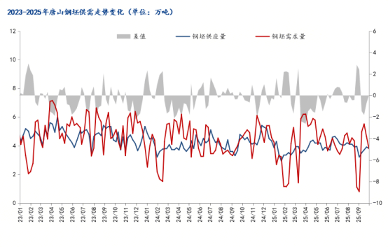圖六:2023-2025年唐山鋼坯供需走勢變化
