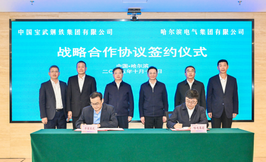 10月14日,中國寶武與哈電集團在哈爾濱簽署戰(zhàn)略合作協(xié)議,中國寶武黨委書記、董事長胡望明與哈電集團董事長、黨委書記黃偉,董事、總經(jīng)理、黨委副書記劉清勇見證簽約并座談交流。