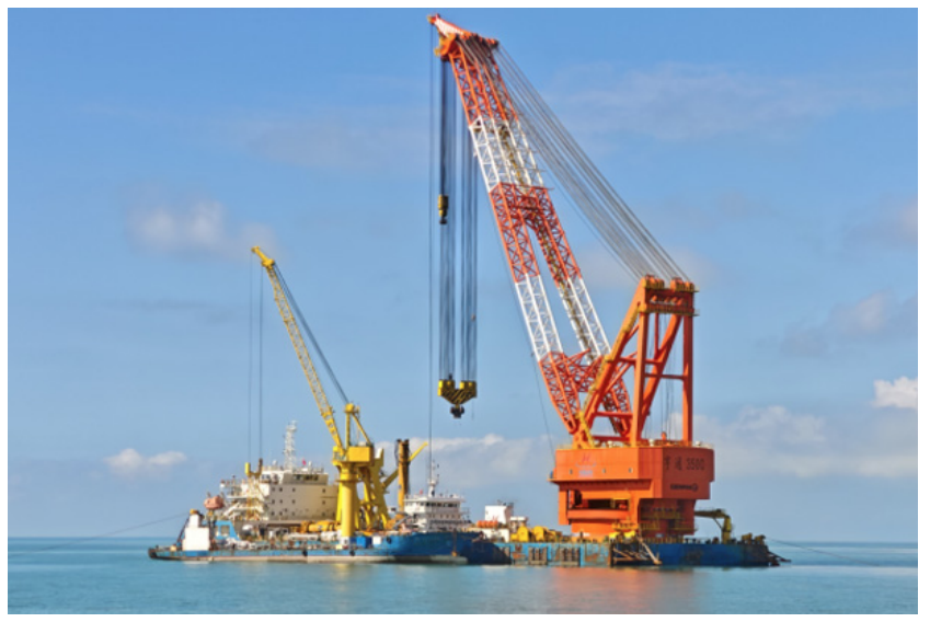 圖為龍源電力海南東方海上風(fēng)電項目單樁基礎(chǔ)施工